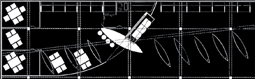Ausstellungsgestaltung für den Messeauftritt eines amerikanischen Surfartikelherstellers. Die abstrakten Grundrissformen leiten sich aus der Welt des Segelns ab. Auf die gesamte Rückwand wird ein Film von sich brechenden Riesenwellen projiziert. Die Produkte sind wie selbstverständlich in die Architektur eingegliedert, Surfsegel werden zu Raumteilern, Surfboards zu Tischen... ![]() |